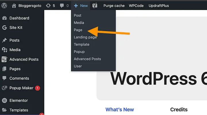 Then click on New > Page: