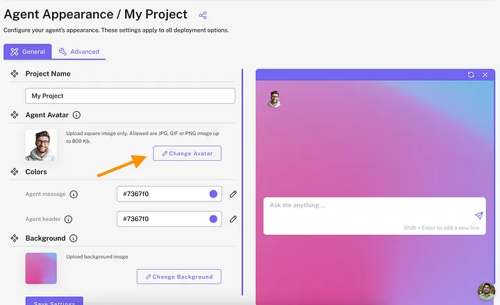 This opens a view where you can customize your AI agent’s appearance.
