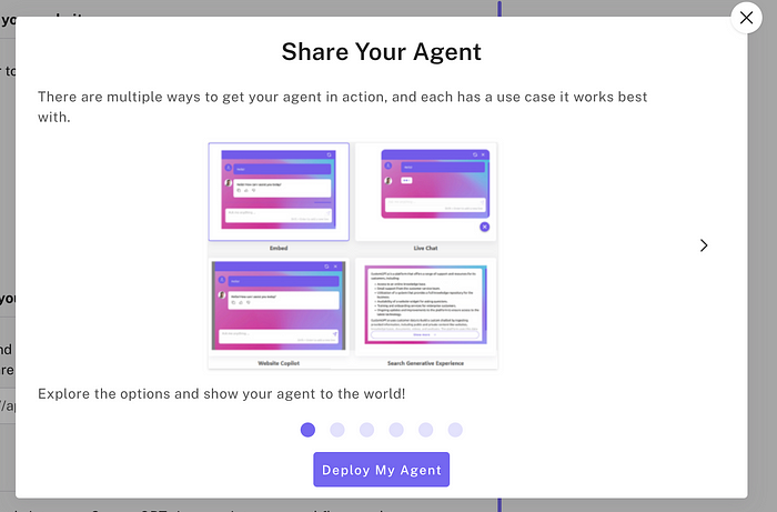 Now your AI support bot is ready for launch. To start using it, click on “Deploy My Agent.”